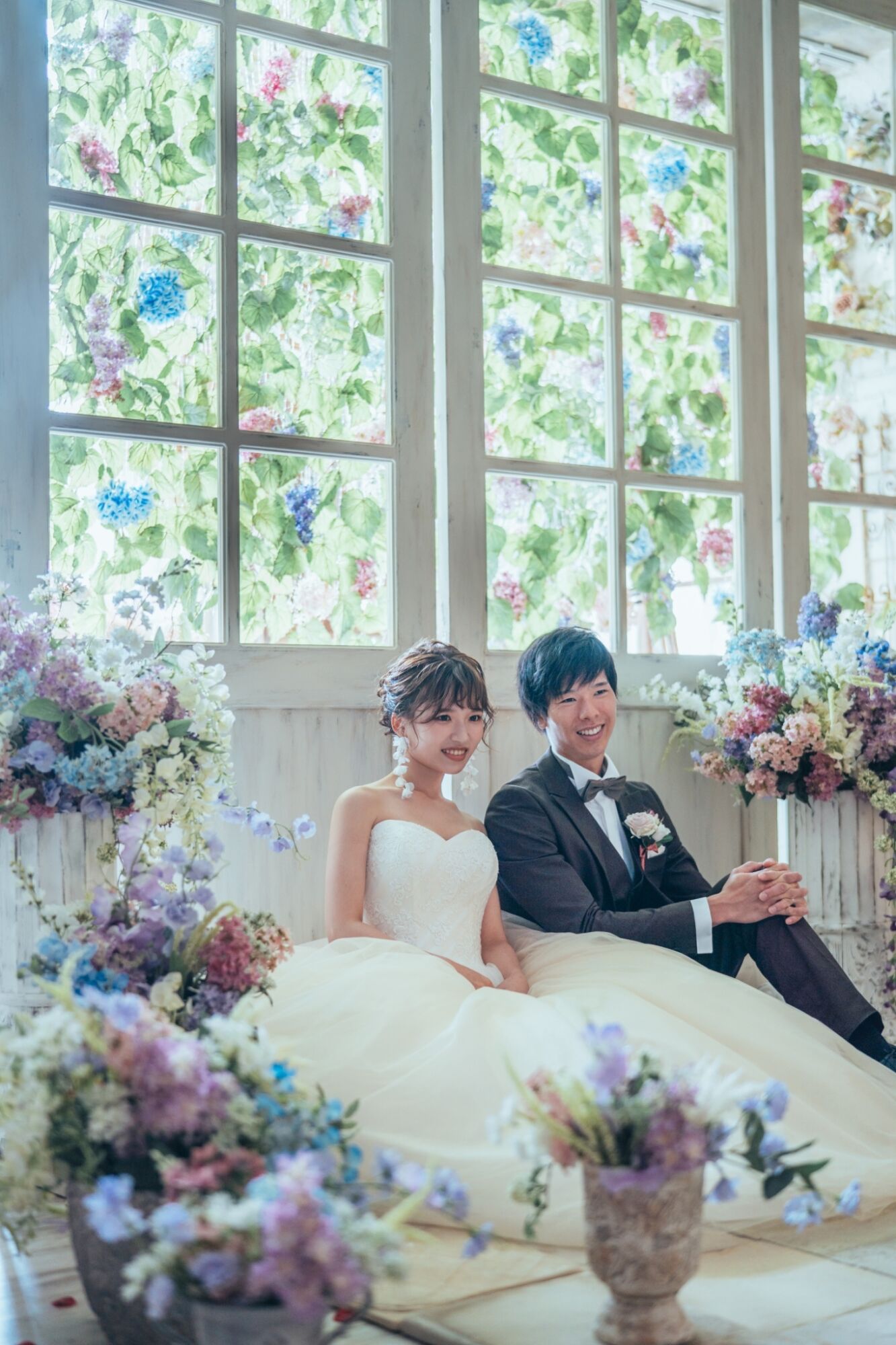 キラキラと輝く宝石のような紫陽花に囲まれた、幻想的なゾーン。ドレスにも和装にも、お好きなスタイルに合わせて。