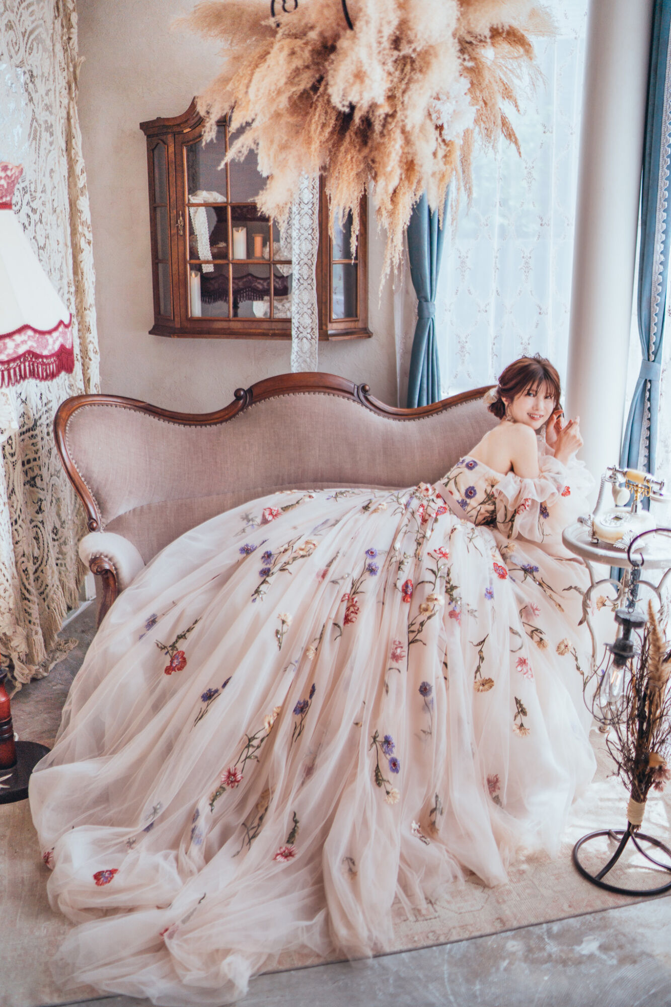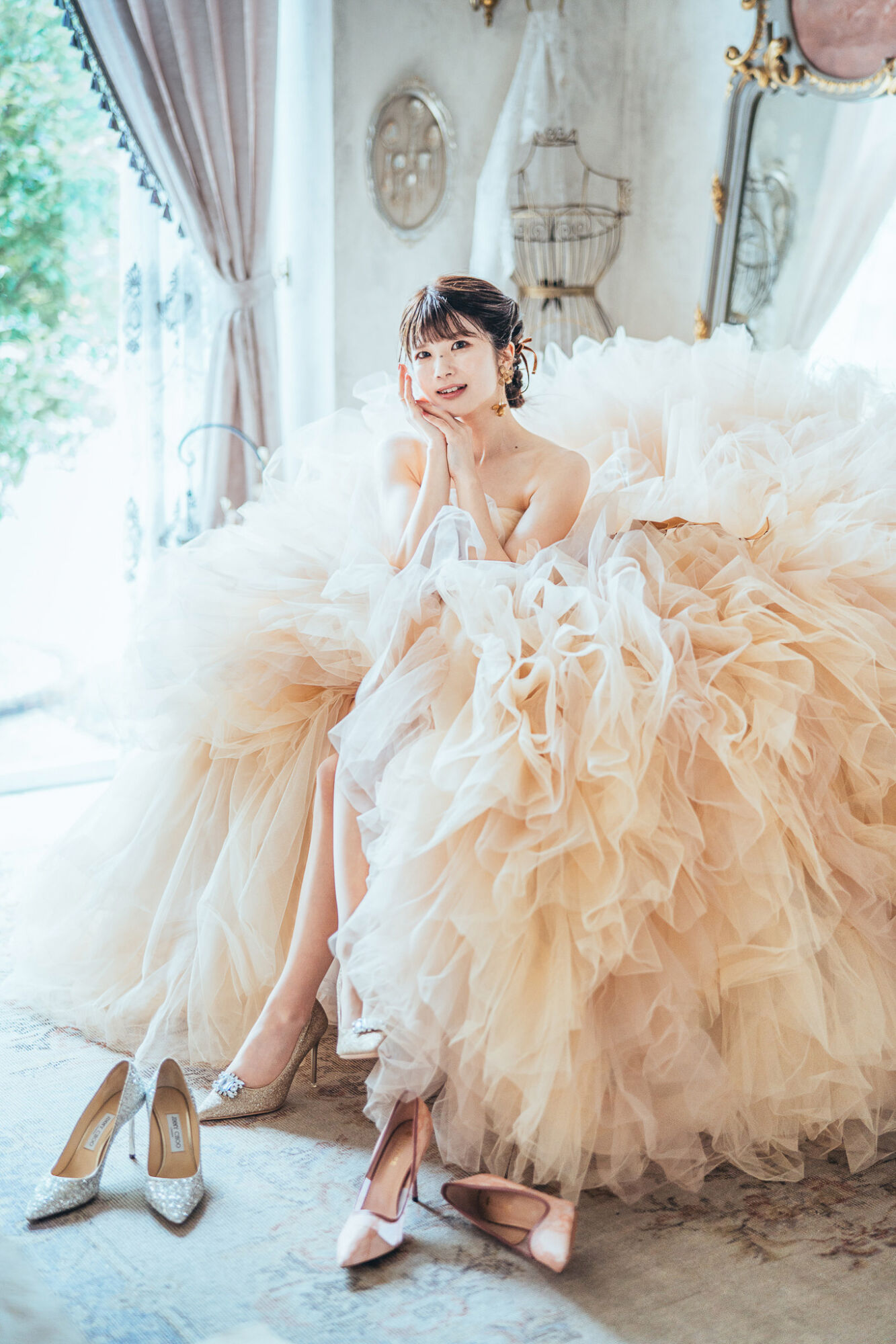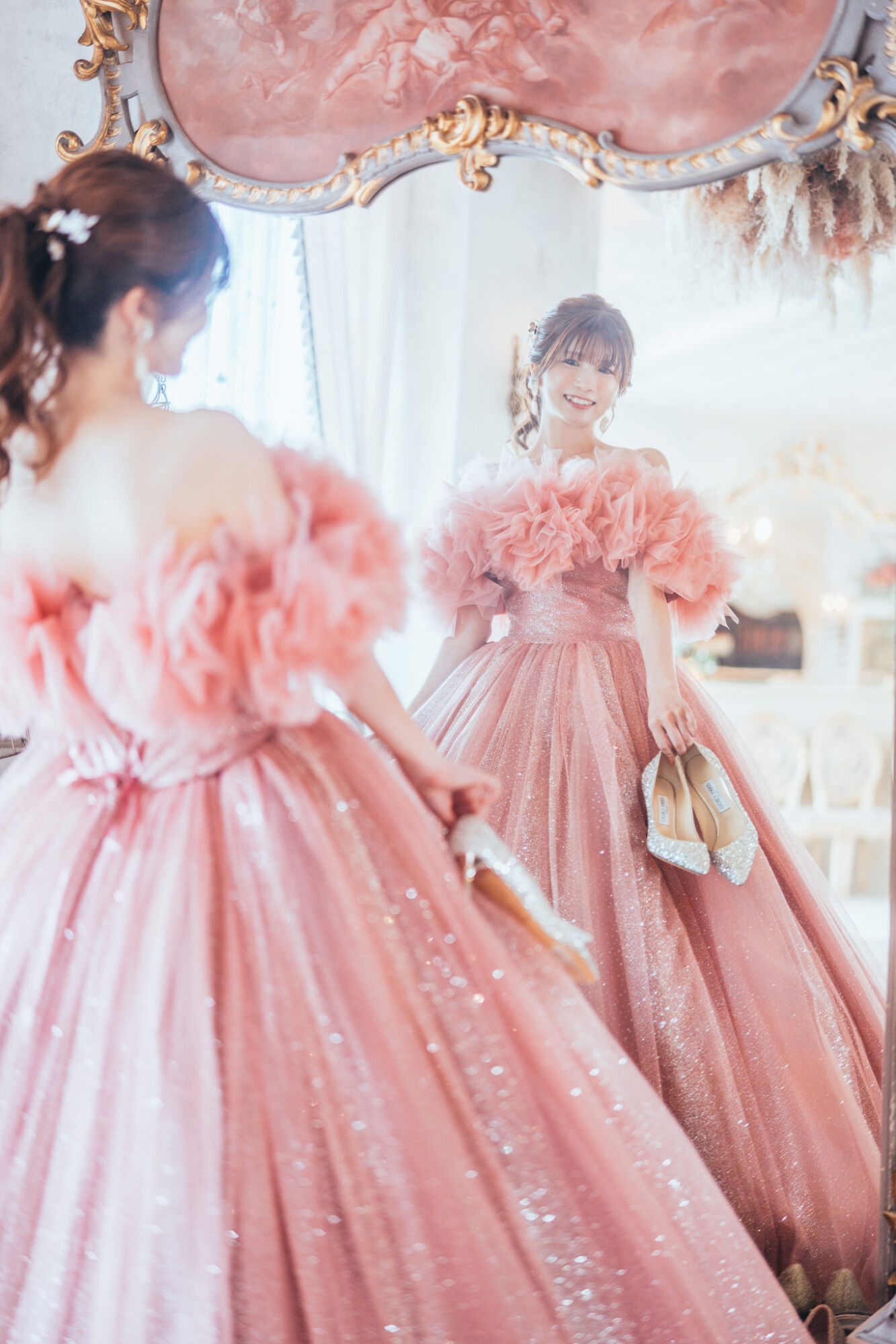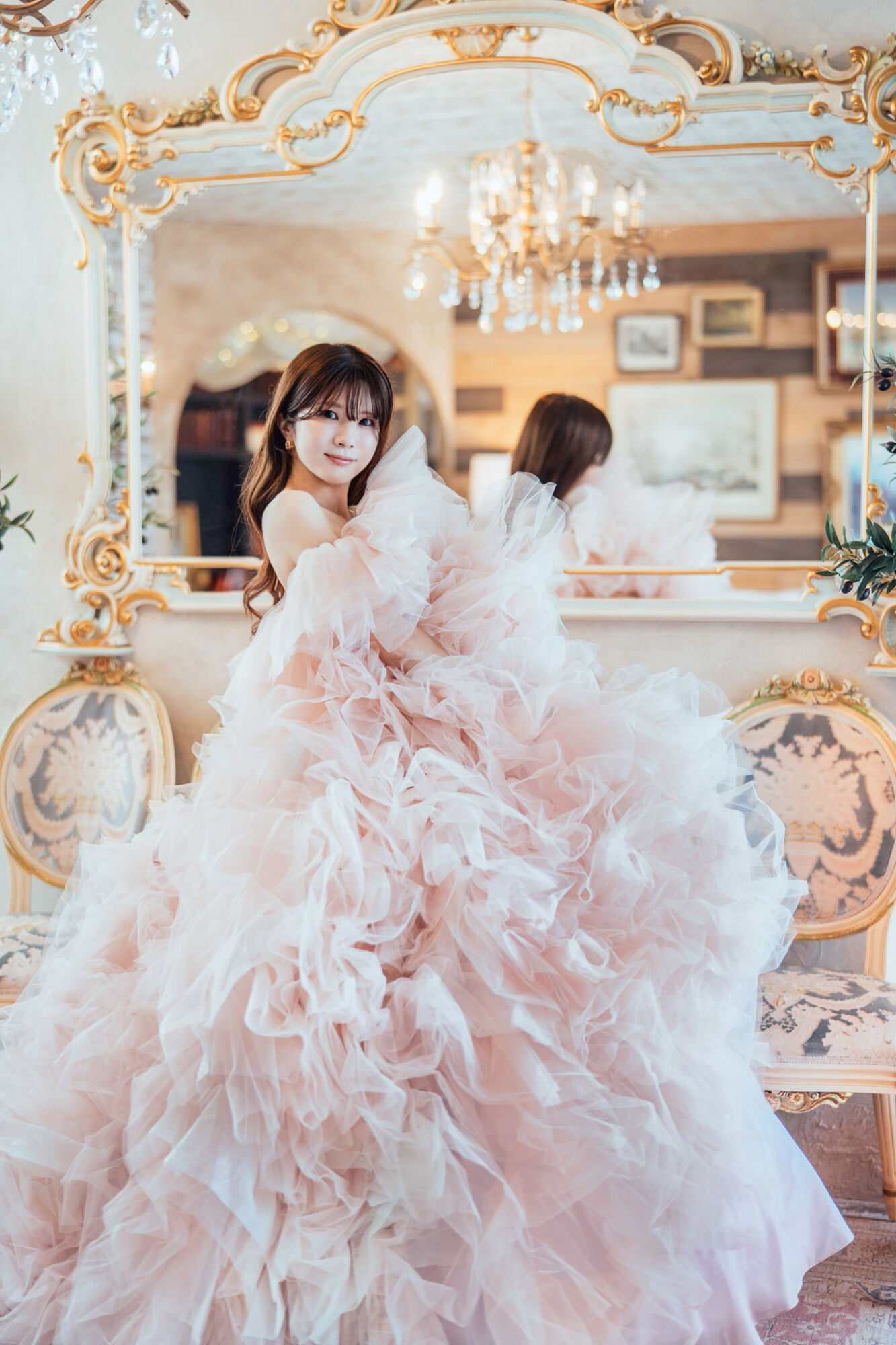 eggfilmが「いつかは購入したい」と思い続けていた、世界に1点だけのフレンチアンティークの大きなミラー。美しく柔らかな光と特別な家具に囲まれて、憧れのウエディングフォトを。