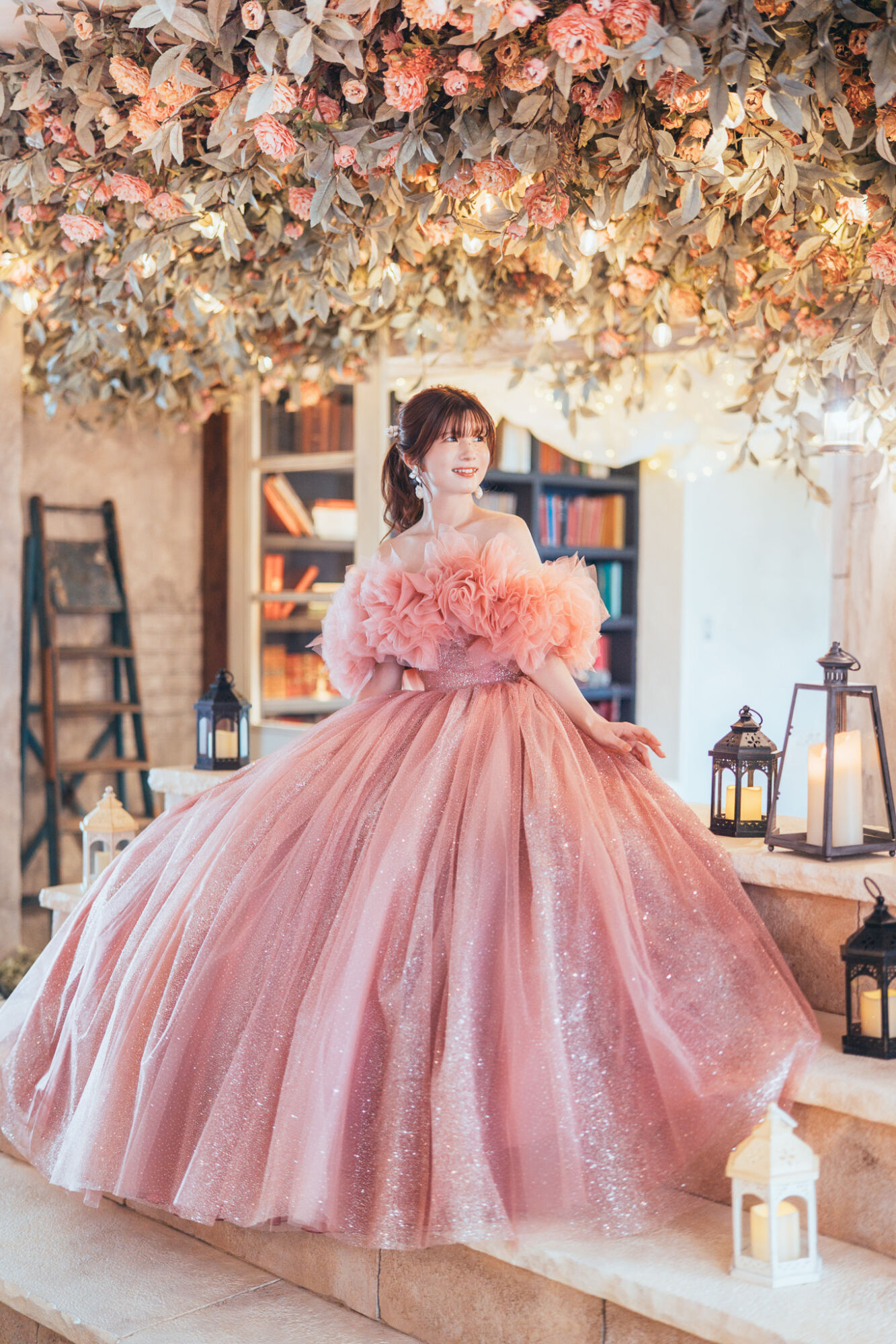 ピンクの壁とトロピカルな装花がかわいいブース。花嫁人気投票では第2位を獲得しており、大人っぽい雰囲気が多い2ndスタジオの中で、可愛く華やかなウエディングフォトが撮影できる空間です。