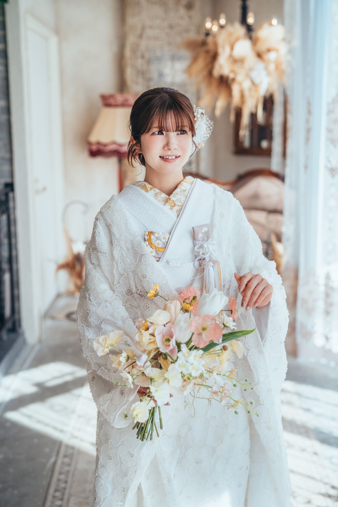 パールの花が360°咲き誇る純粋無垢のレース打掛