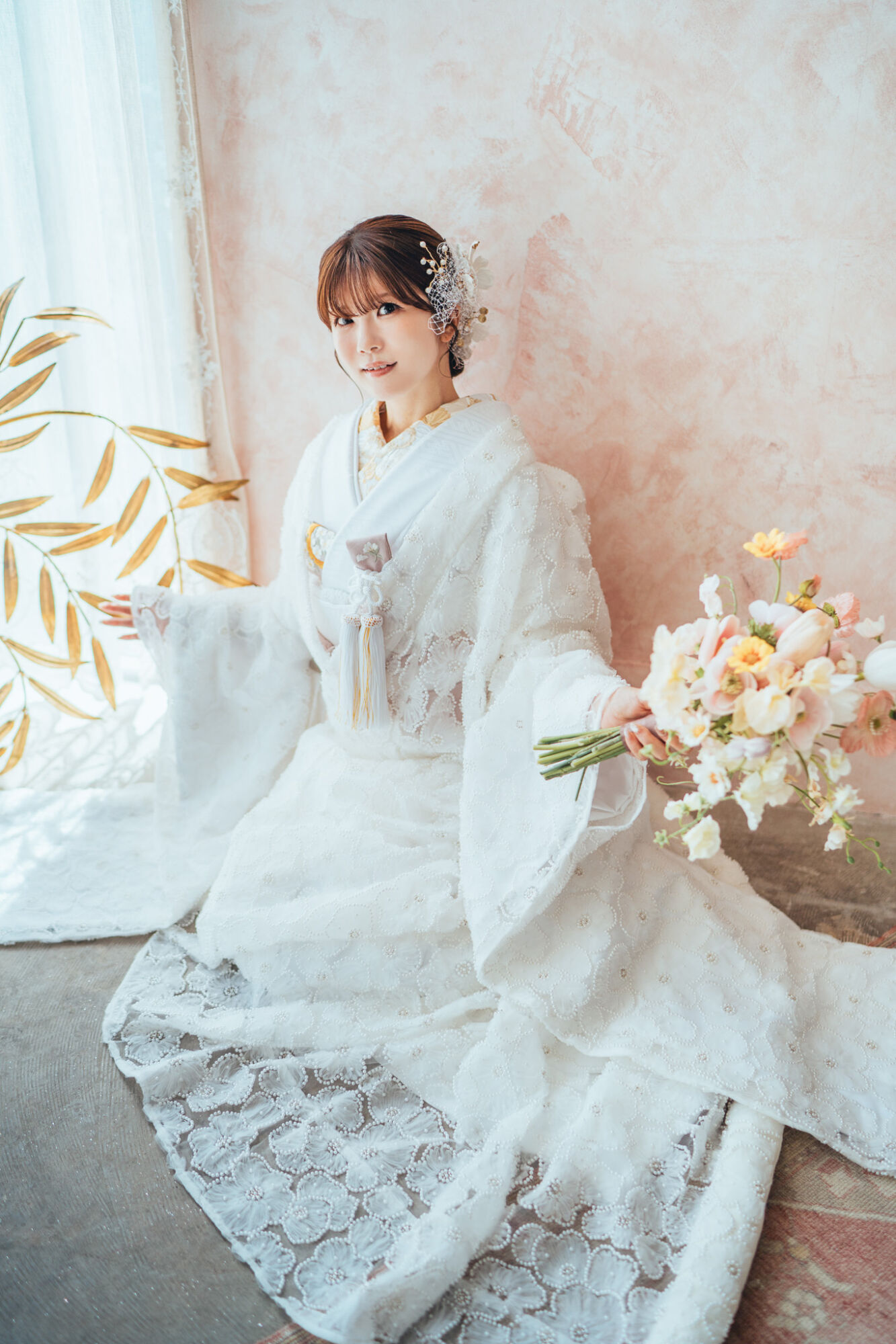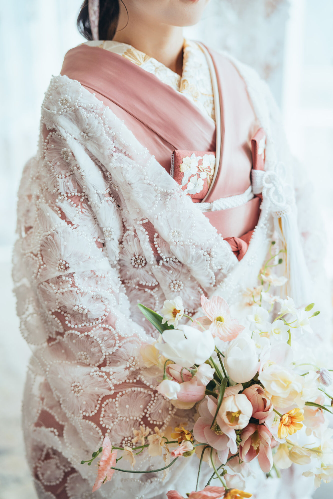 ほんのり薄い桃色が上品に花嫁を包み込みます。